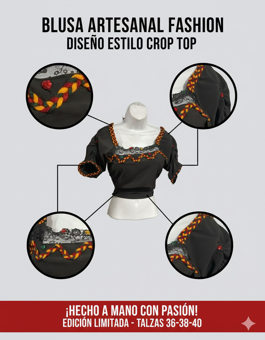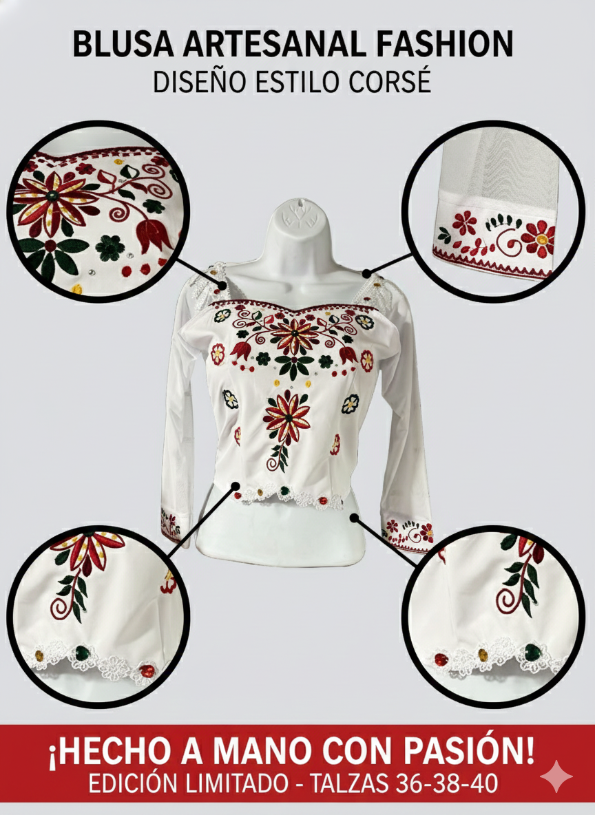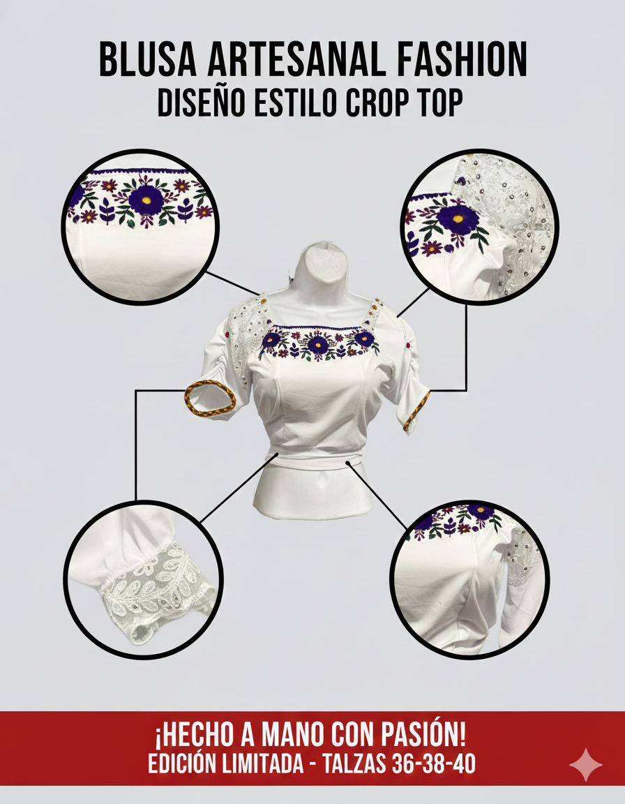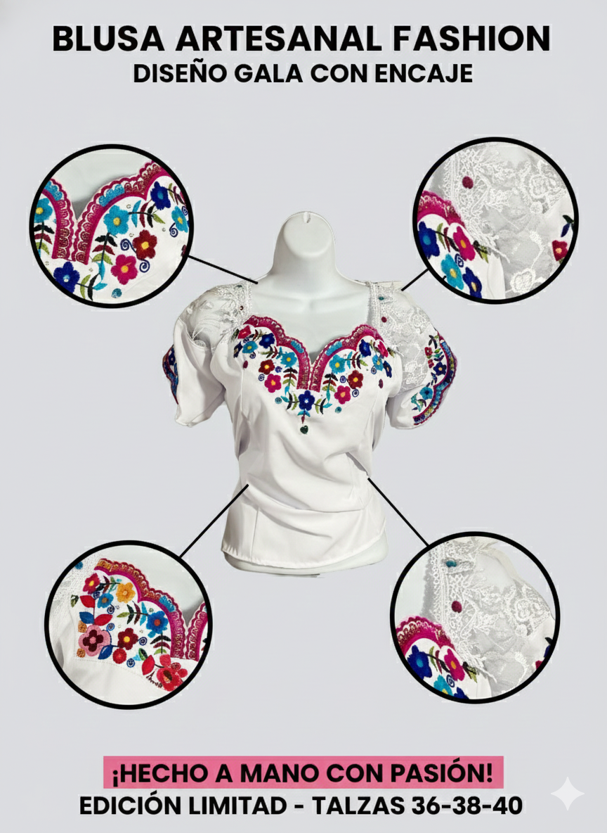💠 ¿Qué ofrecemos? Blusas artesanales personalizadas con diseños únicos, inspirados en símbolos y bordados indígenas. Confección a medida, adaptada al gusto, talla y estilo de cada cliente. Asesoría en diseño para combinar tradición con estilo moderno. Pedidos para eventos especiales, danzas, comunidades o uso diario. 🌿 ¿Qué nos hace diferentes? Cada prenda está hecha a mano con dedicación y amor por nuestras raíces. Usamos materiales de calidad, cómodos y resistentes. Trabajamos con mujeres artesanas que mantienen viva la tradición textil.